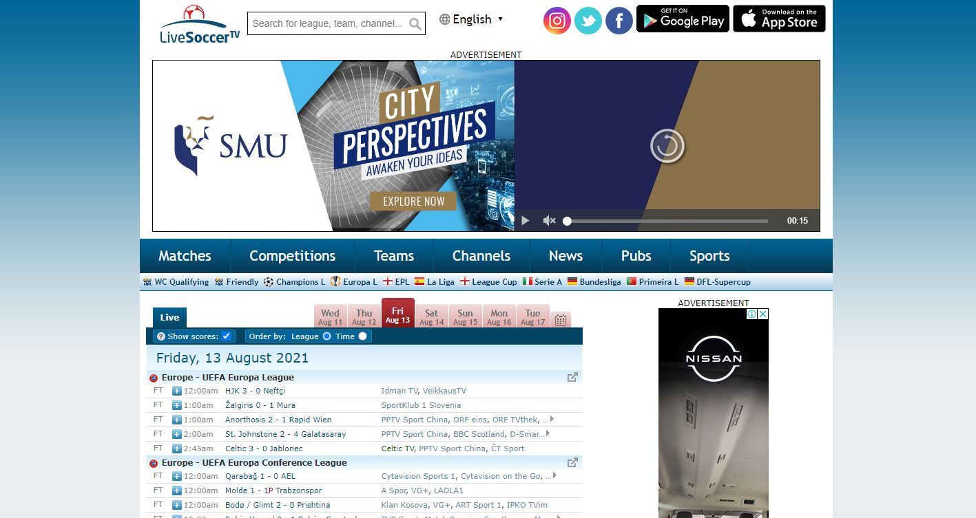 Livesoccer.tv - Livesoccertv is een uitstekende site om op de hoogte te blijven van de laatste Europese voetbalwedstrijden! Het biedt informatie over elke game, inclusief live-tickers en stations die de game uitzenden